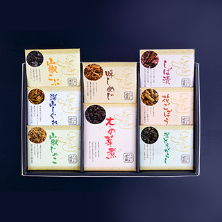 山椒あゆと人気商品の佃煮を贈答用セットにしました。